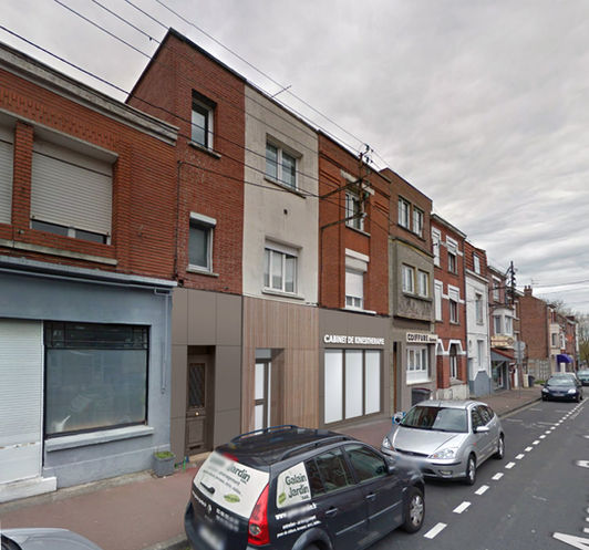 Ancienne librairie transformée en espace de soins et de remise en forme, le projet associe une grande salle commune équipée pour le sport à trois boxes de travail individuel.
